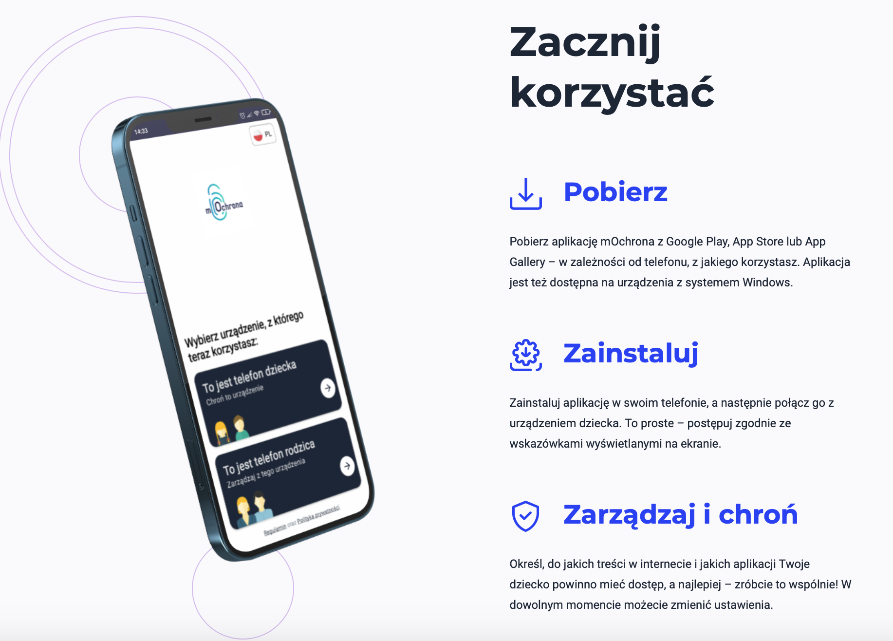 Aplikacja ochrony rodzicielskiej dostępna jest na smartfony, tablety i komputery.