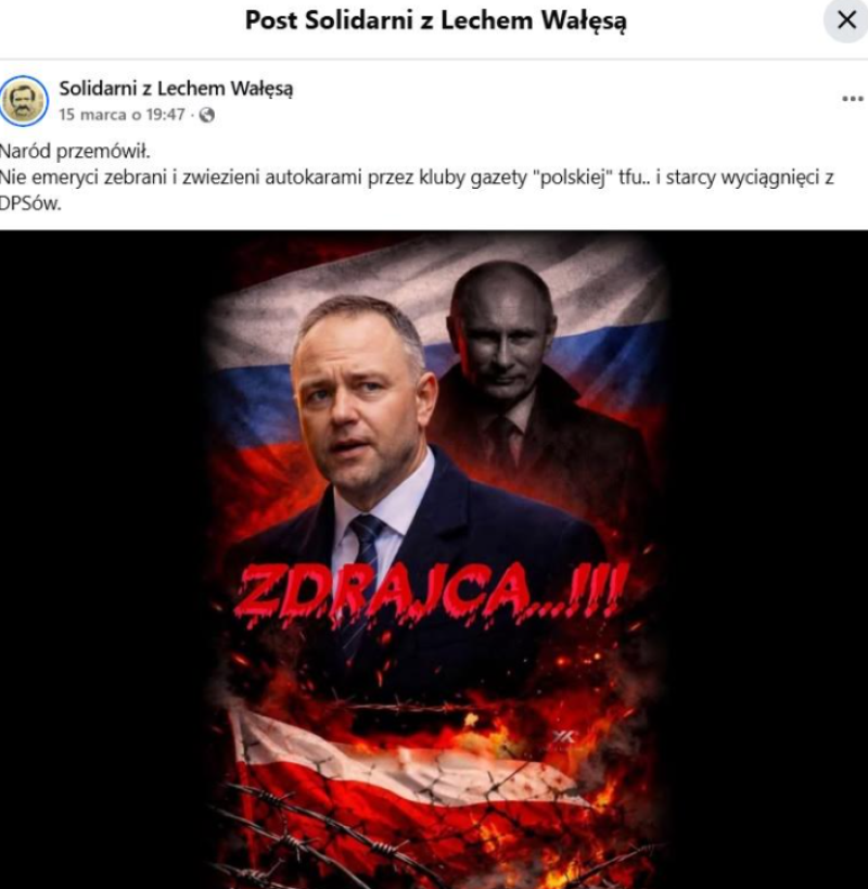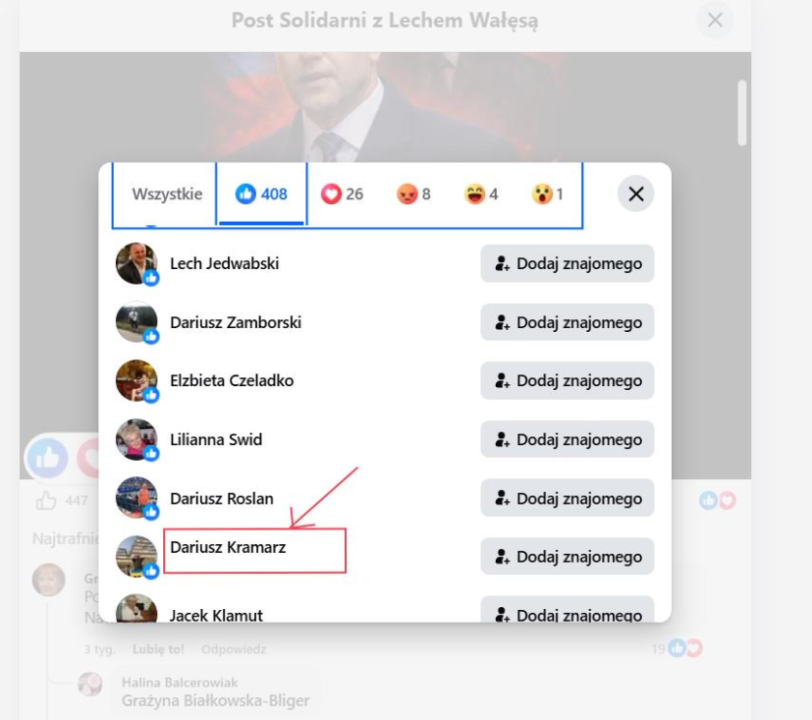 Internetowa aktywność Kramarza jest jednak znacznie szersza. Notariusz trzy tygodnie temu polubił wpis opublikowany na Facebooku, w którym prezydent RP Karol Nawrocki został określony jako "zdrajca".