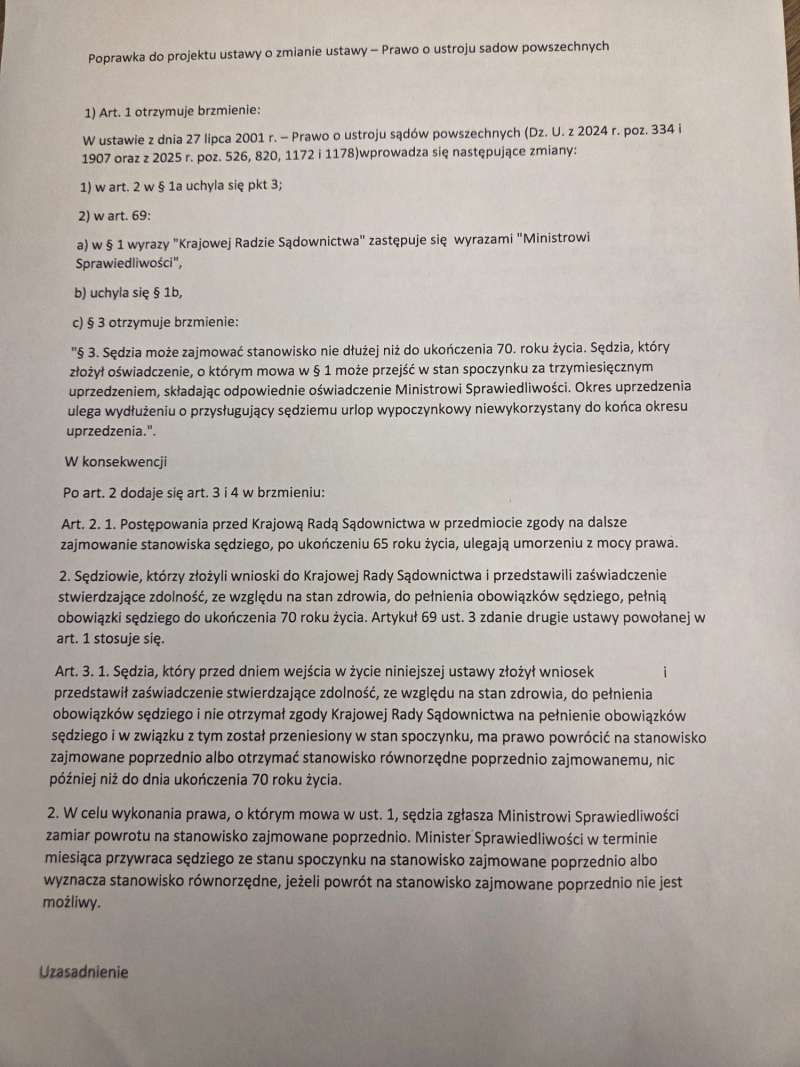 Uważa, że nowa regulacja to "krok wstecz", który osłabia niezależność sądów. Zamiast realnej oceny przydatności wprowadza "zwykłe oświadczenie i zaświadczenie lekarskie", co jest "czystą formalnością". "W praktyce starsi sędziowie mogą blokować miejsca młodym, a wymiar sprawiedliwości traci szansę na odmłodzenie i modernizację" - ostrzega sędzia.