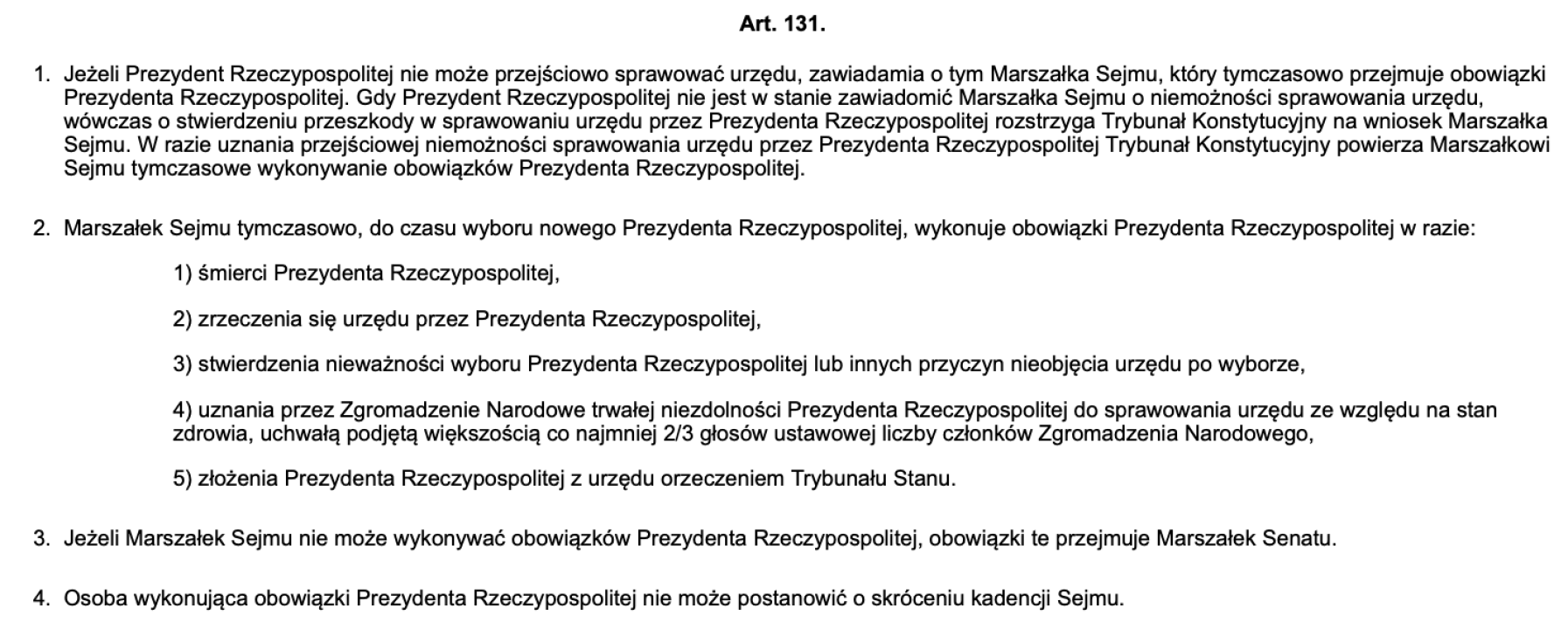 Jego zdaniem, możliwy jest wniosek marszałka Sejmu do TK o stwierdzenie, że prezydent Nawrocki w swojej rzekomej bezczynności nie może dalej pełnić urzędu. Wszystko w oparciu o wypaczoną interpretację art. 131. Konstytucji RP. Co dalej?