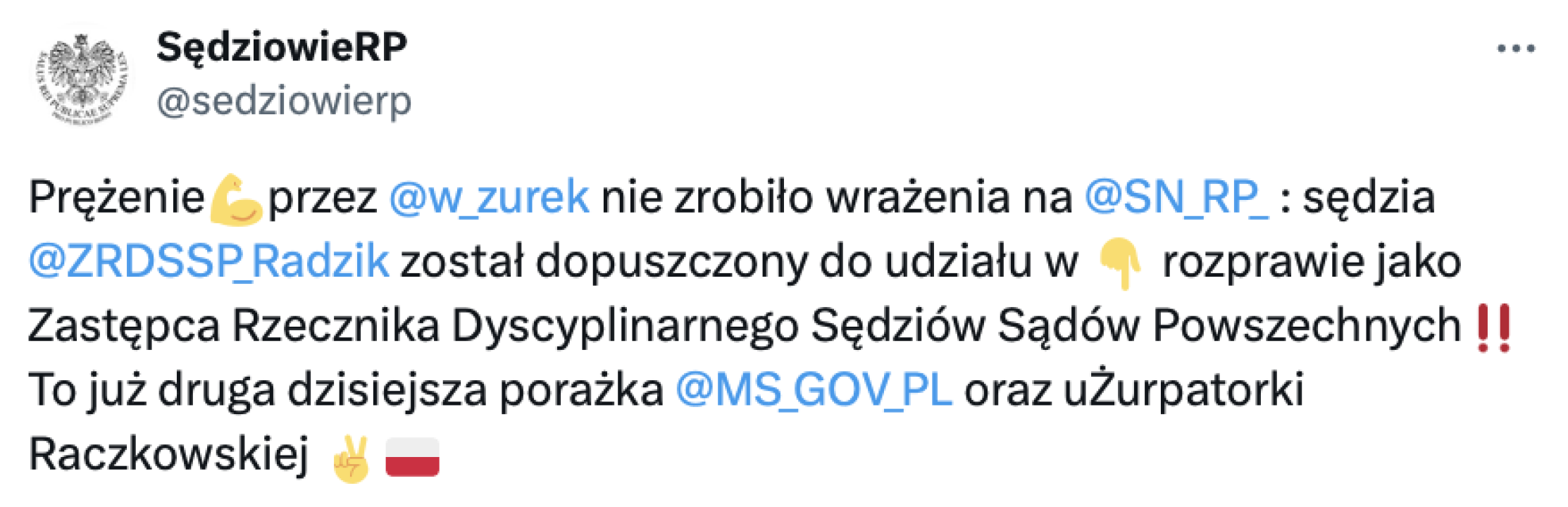 „Potwierdza to jednoznacznie, iż legalnym i wyłącznym Rzecznikiem Dyscyplinarnym Sędziów Sądów Powszechnych pozostaje sędzia Piotr Schab”