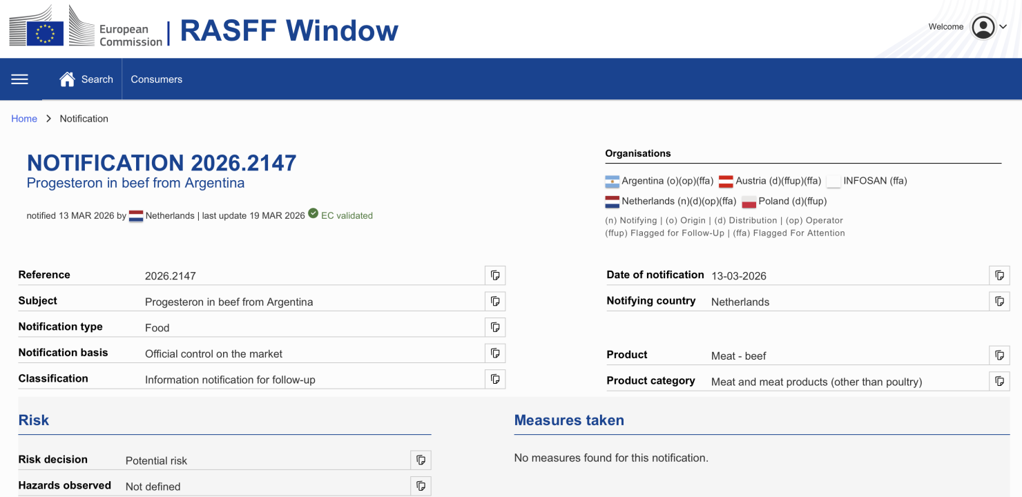 W sprawie zareagował ostatnio Główny Inspektorat Weterynaryjny. W wydanym komunikacie czytamy: "w wyniku działań urzędowych Inspekcji Weterynaryjnej wykryto progesteron w próbkach mięsa wołowego pochodzącego z Urugwaju oraz Argentyny pobranych w ramach podejrzenia w związku z wcześniejszym powiadomieniem dotyczącym nieprawidłowości stwierdzonych w mięsie pochodzącym z Brazylii".