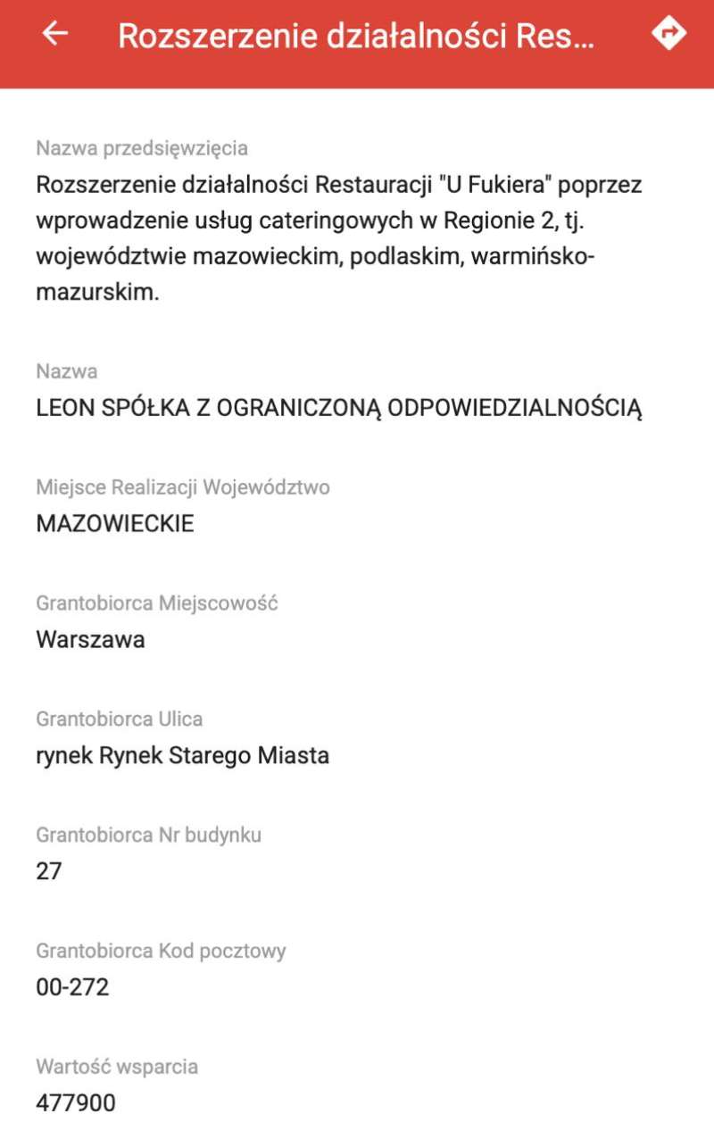„Rozszerzenie działalności Restauracji "U Fukiera" poprzez wprowadzenie usług cateringowych w Regionie 2, tj. województwie mazowieckim, podlaskim, warmińsko-mazurskim”