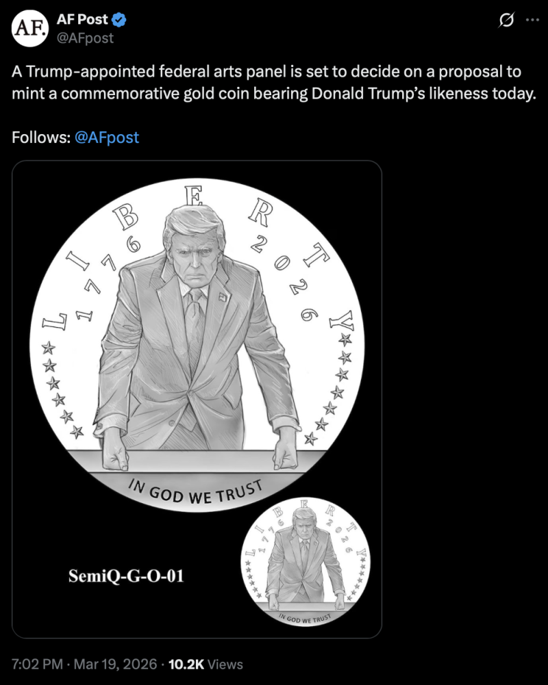 Agencja AP zwróciła uwagę, że amerykańskie prawo nie pozwala umieszczać podobizny urzędującego prezydenta na monetach przeznaczonych do obiegu. Reuters zaznaczył jednak, że ograniczenie to nie obejmuje monet kolekcjonerskich.