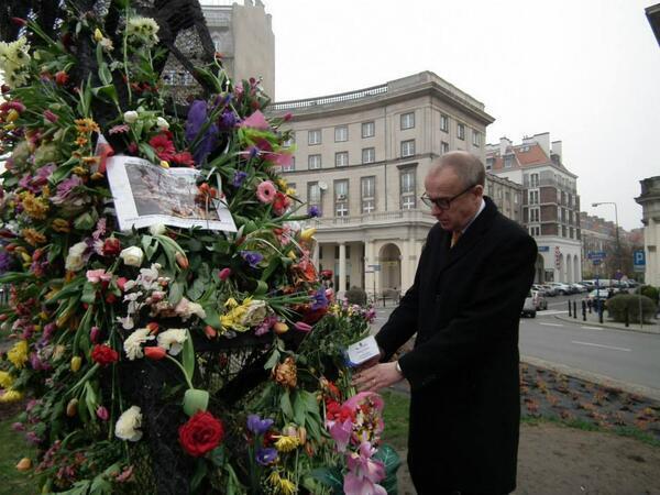 Ambasador Szwecji w Polsce Staffan Herrström odwiedził resztki spalonej tęczy na Placu Zbawiciela w Warszawie.