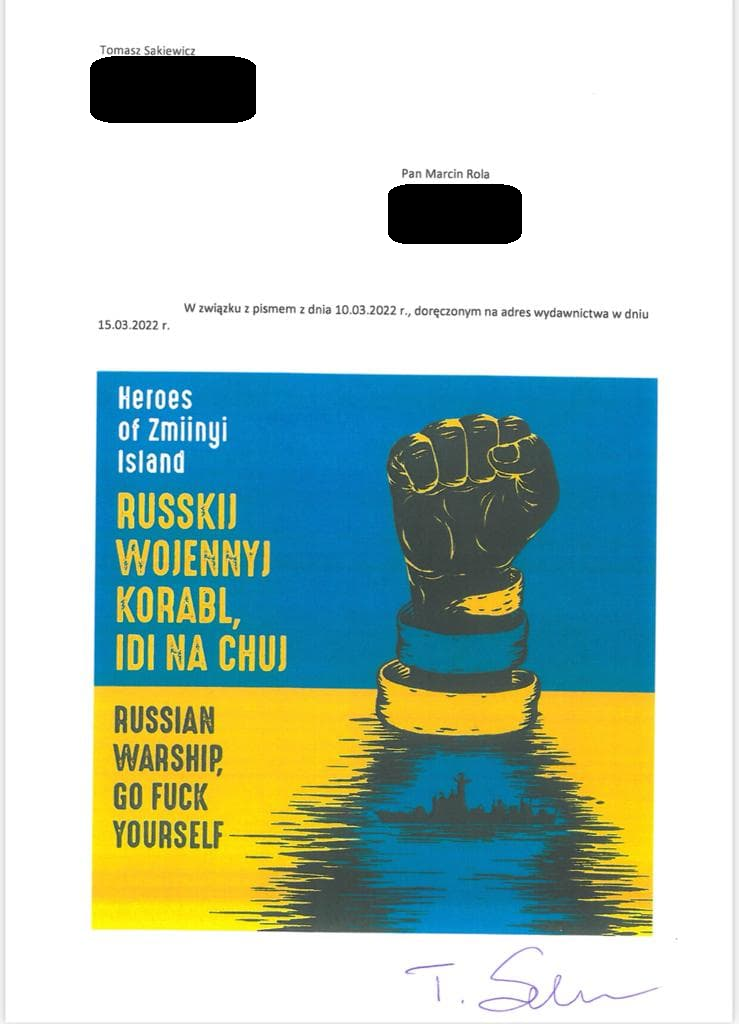 Tomasz Sakiewicz oczywiście nie dał się zastraszyć tak absurdalnej groźbie pozwu ze strony osoby, która w ostatnim czasie wielokrotnie wpisywała się w narrację Kremla na temat Ukrainy.