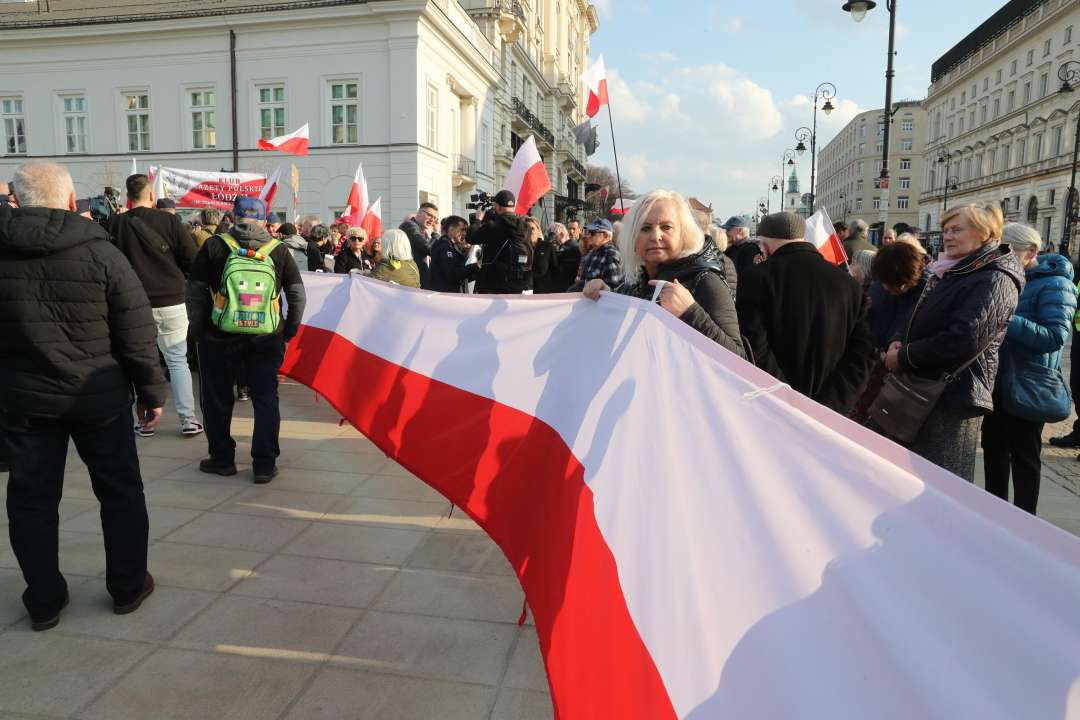 Grzechy Tuska i jego szajki można wymieniać do rana, ale tu jesteśmy, żeby wesprzeć naszego prezydenta. On zrobił to, co należało. On zrobił to, o co my go prosiliśmy, o co prosili go wyborcy, 10 milionów wyborców. Musicie się pogodzić z tym, że jest prezydentem i my go obronimy przed waszymi fałszywymi oskarżeniami. My go obronimy przed tym przemysłem pogardy, który kiedyś był stosowany wobec naszego prezydenta Lecha Kaczyńskiego