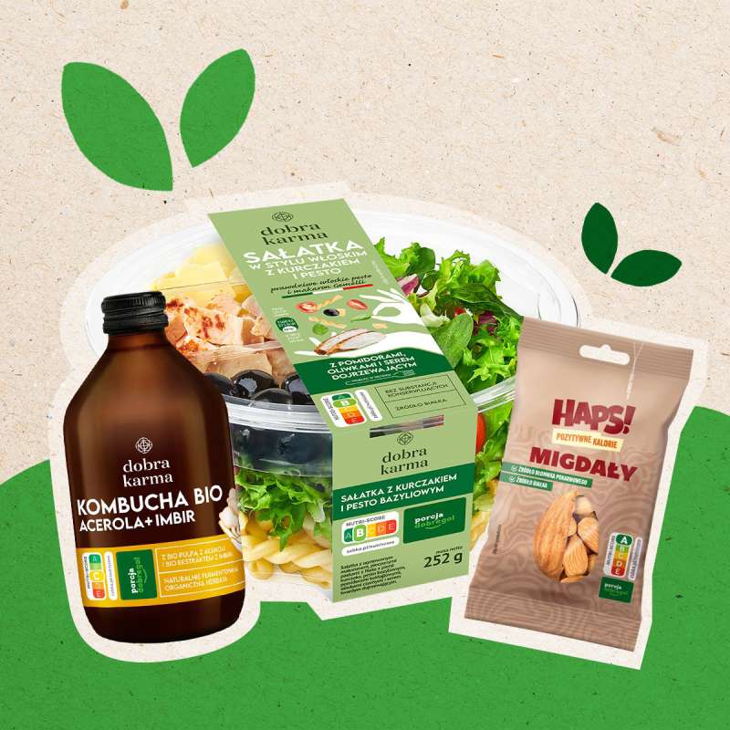 By codzienne wybory stały się zdrową rutyną, potrzebują wsparcia. Linia produktów z zieloną etykietą „Porcja Dobrego!” ułatwia to, wyróżniając posiłki i przekąski z najwyższymi ocenami Nutri-Score (A lub B). Oferta stale się rozwija i obejmuje już około 140 produktów co ułatwia sięganie po lepiej zbilansowane opcje na co dzień. Wśród nich znajdują się m.in. przekąski i sałatki Dobra Karma, kanapki Tomcio Paluch oraz wysokobiałkowe posiłki Maczfit dostępne w sklepach Żabka